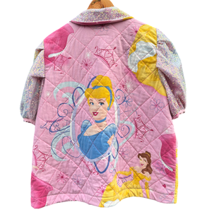 Het jack wordt met de hand gemaakt en is een echt one of a kind item, geen tweede is hetzelfde. De quilted details aan de voorzijde, de speels geplaatste prinsessenprints en de glitteraccenten zorgen voor een opvallende, modieuze en fantasierijke uitstraling. Perfect voor festivalwear, streetstyle of iedere dag waarop je je inner princess wilt omarmen.