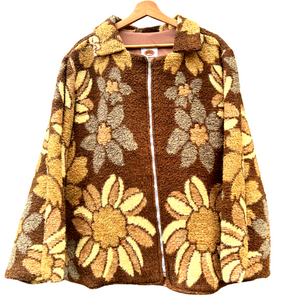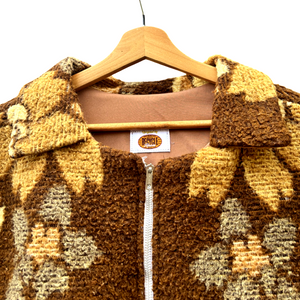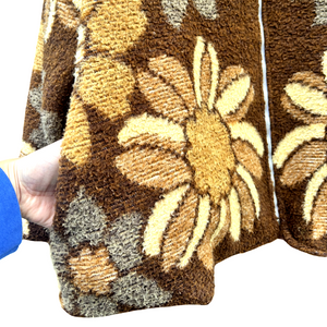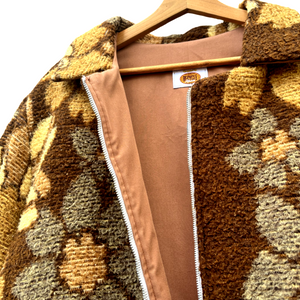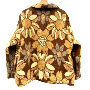 Deze prachtige jas is gemaakt van een vintage deken. Hij valt ruim als een maat XL.